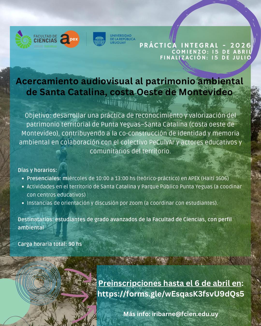 Aquí se presenta la oferta de las distintas actividades de extensión, incluyendo los Espacio de Formación Integral. Los Espacios de Formación Integral son dispositivos de aprendizaje que buscan conjugar en prácticas concretas contenidos de las diversas disciplinas, saberes y funciones universitarias. En ellos se articula e integra la enseñanza, la investigación y la extensión. Son espacios de práctica y enseñanza que promueven el diálogo de saberes entre los actores involucrados en el proceso (docentes, estudiantes, actores sociales, etc.). A partir de este diálogo de saberes se genera conocimiento socialmente útil que sirve de marco conceptual de los actores involucrados en el proceso.