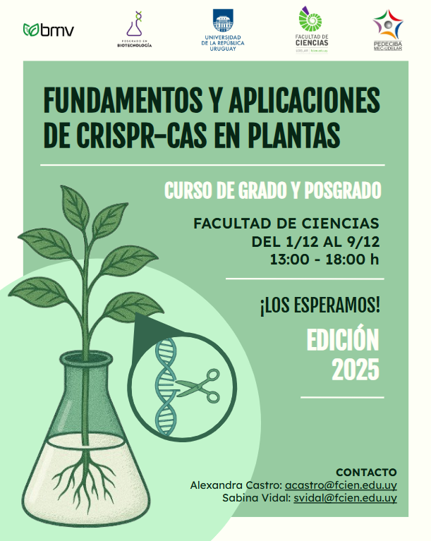 El curso busca aportar las herramientas conceptuales y metodológicas para comprender y promover el uso del sistema CRISPR/Cas9 para la investigación y sus aplicaciones en el campo de la biología vegetal y agrobiotecnología.