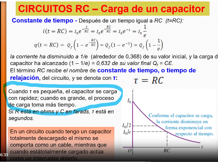 Entonces en un Circuito RC en el que se está Descargando siempre inicialmente no tendrás una Corriente dado que el Capacitor se encuentra Cargado y se comporta como un Interruptor Abierto, y que en un t = 0s cerras el Interruptor y sacas la Batería/Pila (la fuente Fem), tendrás una Qinicial que tiene el Capacitor y una Corriente Negativa en Valor Absoluto que se irá acercando al 0A (sacando esa deducción aplicando la Segunda Ley de Kirchoff) y que pasaría lo mismo en la Carga pero de un Valor por encima de cero hasta acercarse al mismo, es correcto?
